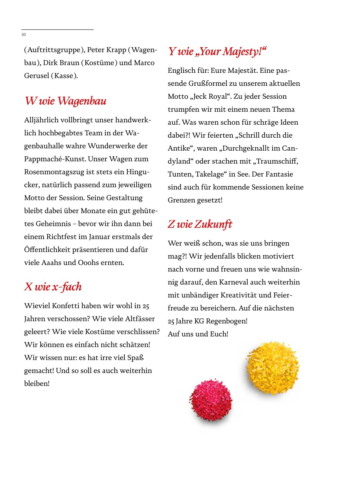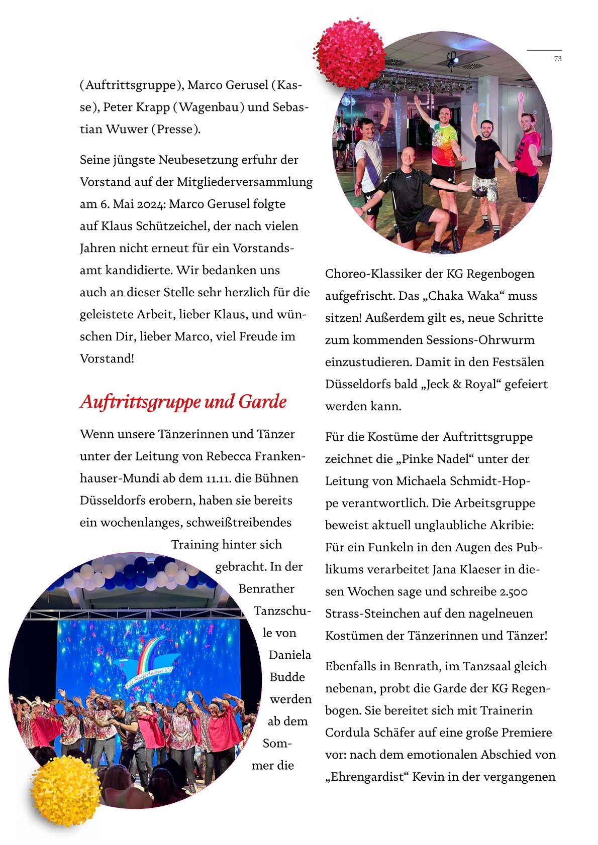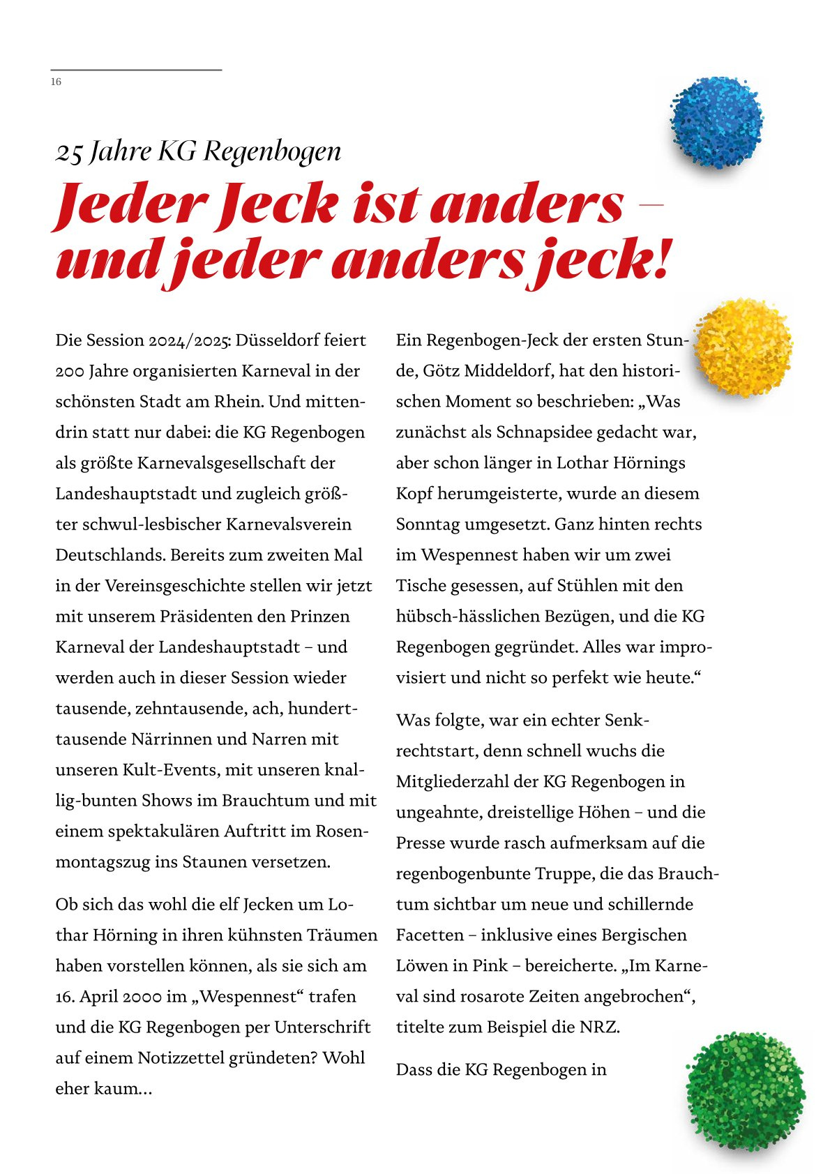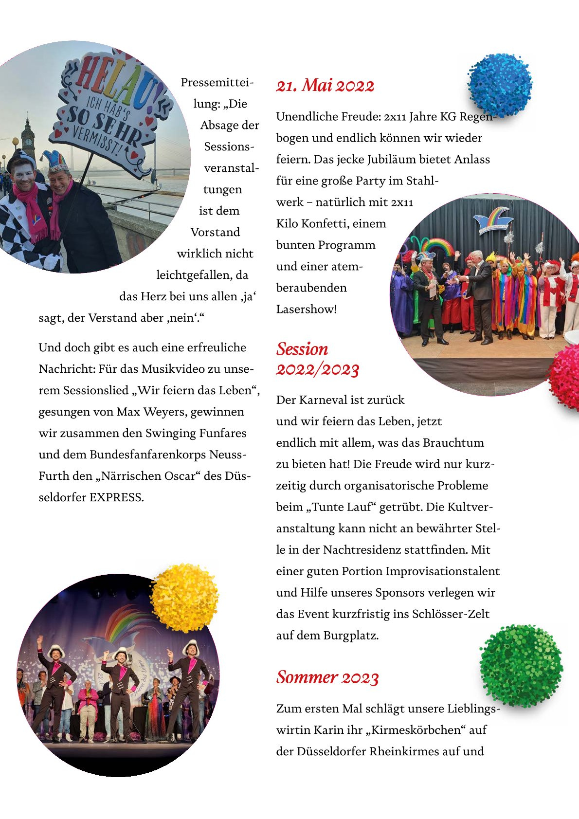 - einen ausführlichen Rückblick auf stolze 25 Jahre KG Regenbogen,