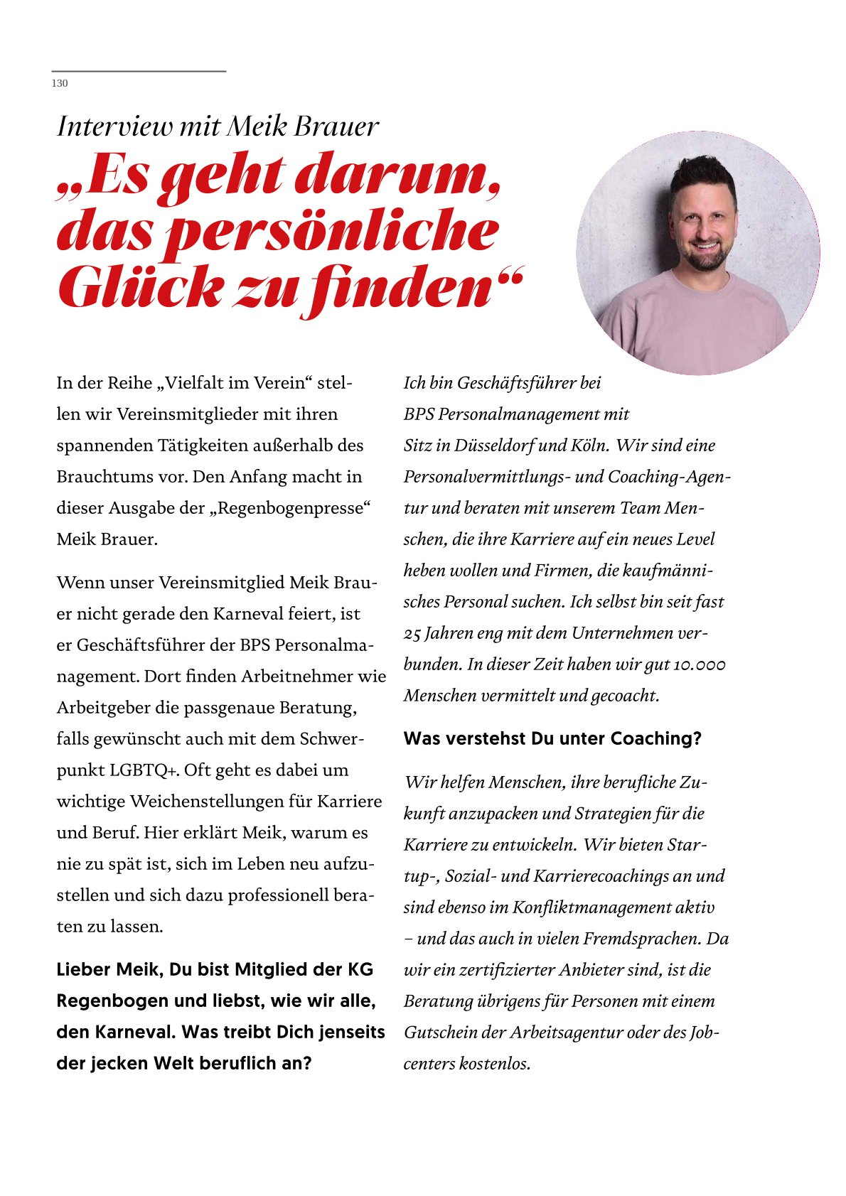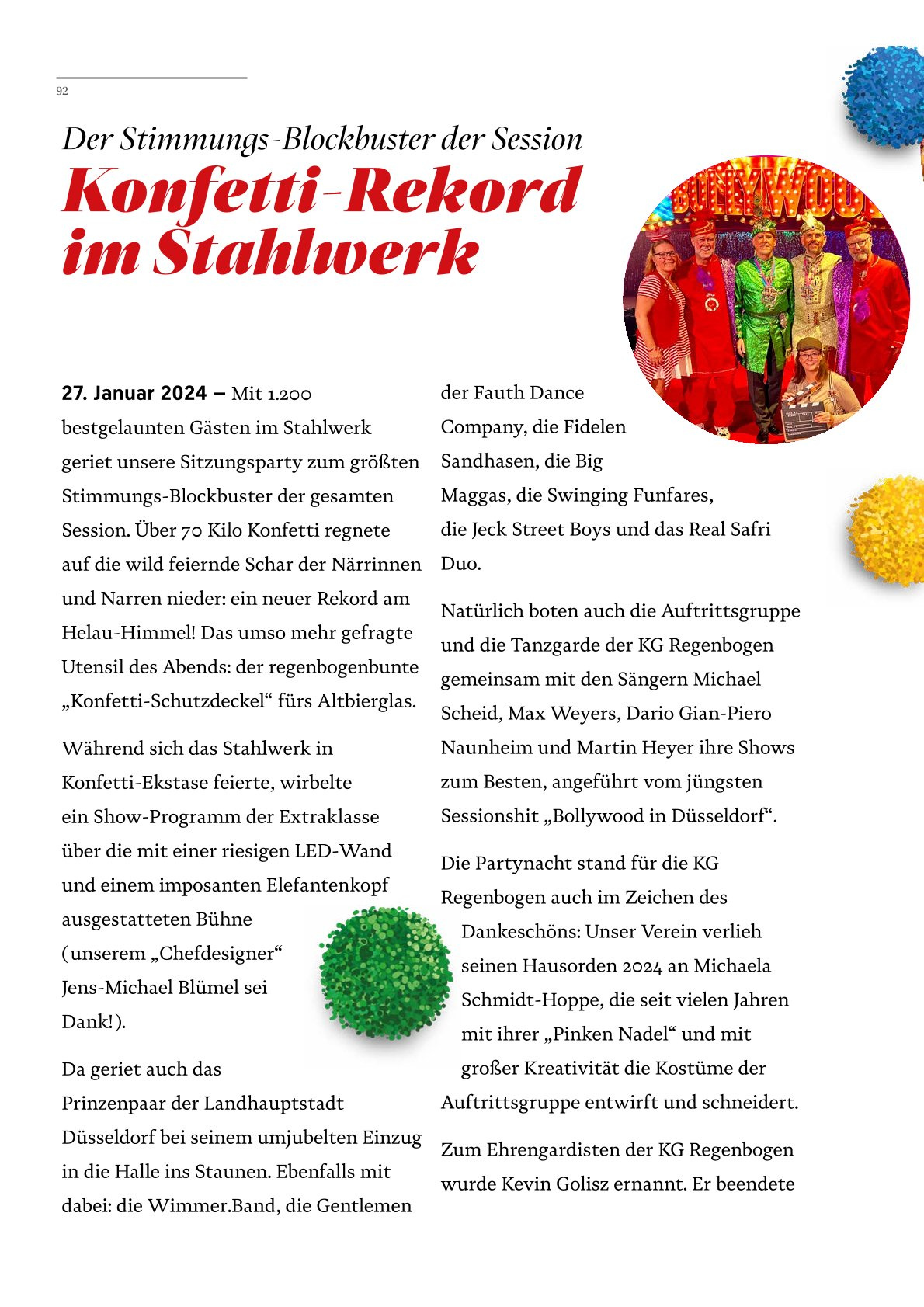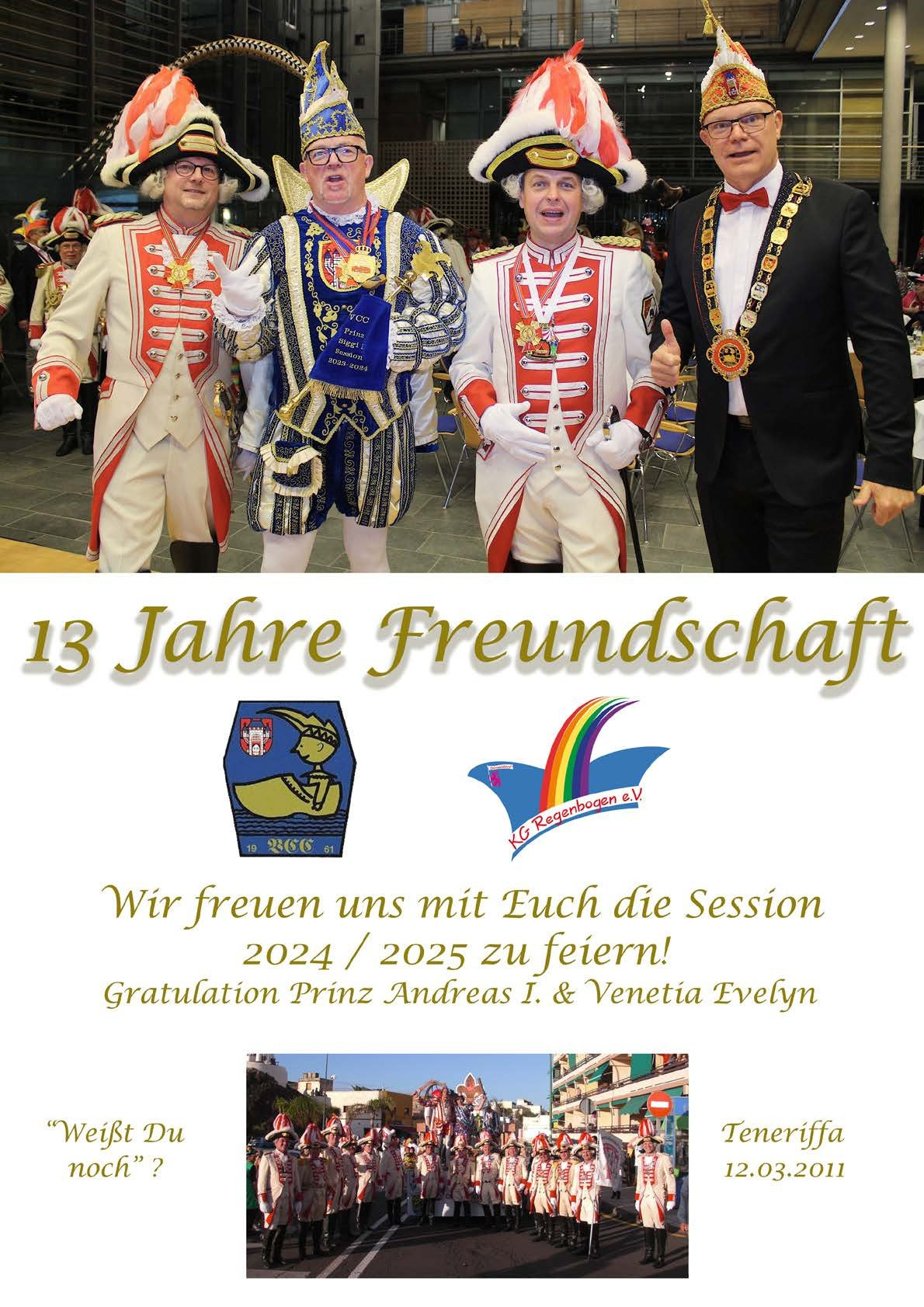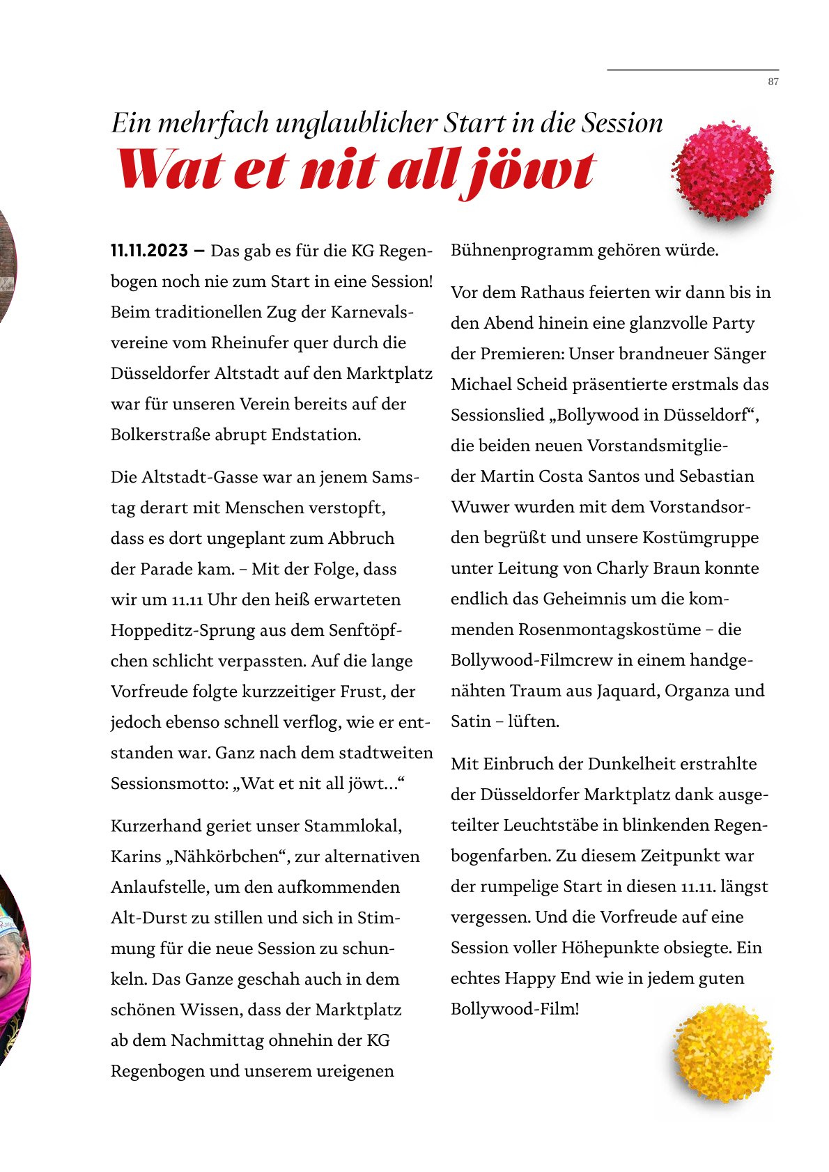 - einen ausführlichen Rückblick auf stolze 25 Jahre KG Regenbogen,