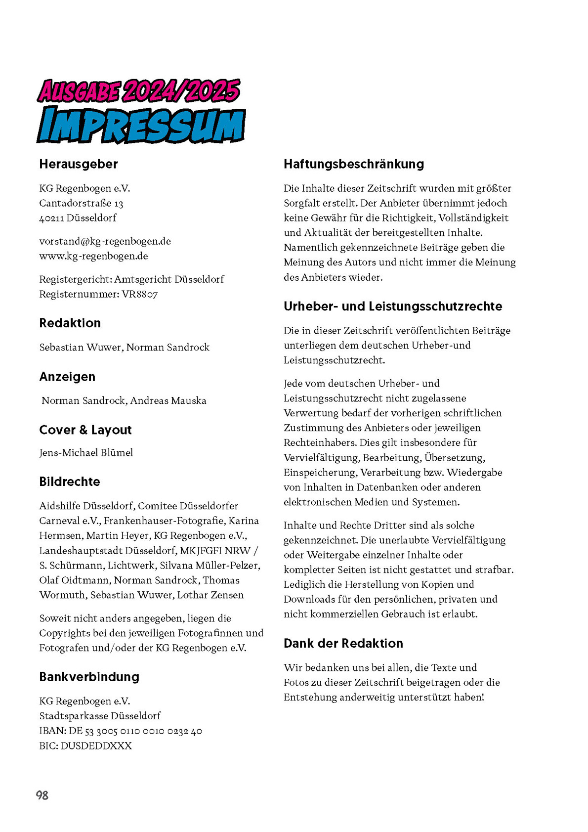 Alle Mitglieder der KG Regenbogen erhalten die Regenbogenpresse in den kommenden Tagen auch automatisch mit der Post.