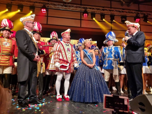 Unsere Auftrittsgruppe gratulierte dem frischgekürten Prinzenpaar mit einem Überraschungsauftritt im Showprogramm. Und zur Feier dieses sehr besonderen Tages ließen wir im Publikum einen wahren Konfettiregen auf das Publikum niedergehen.