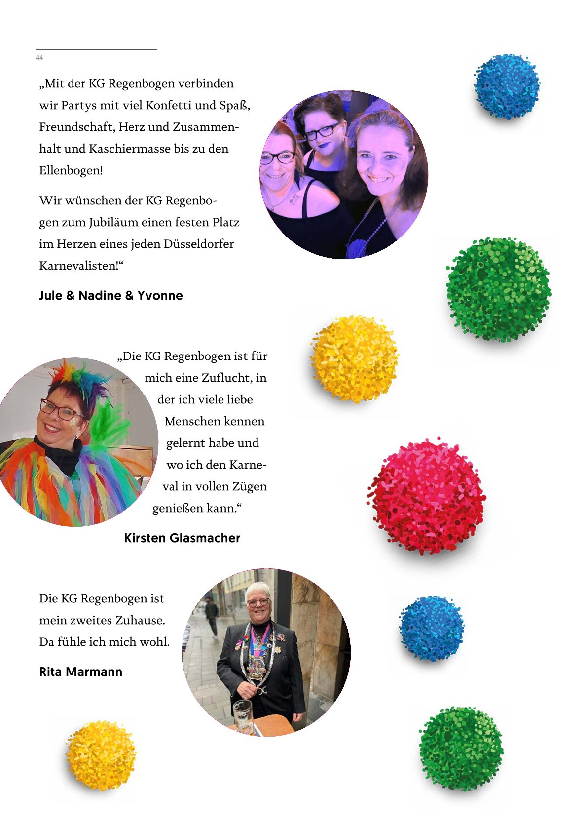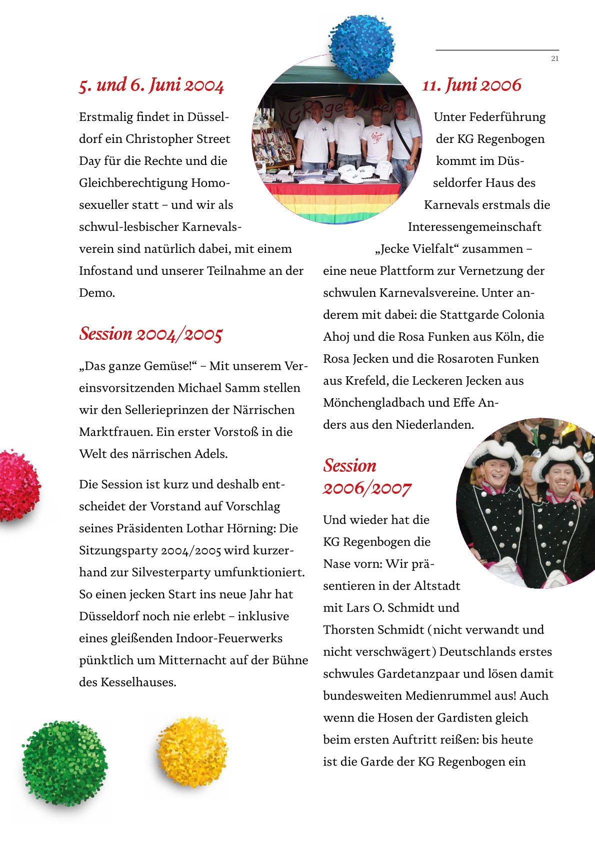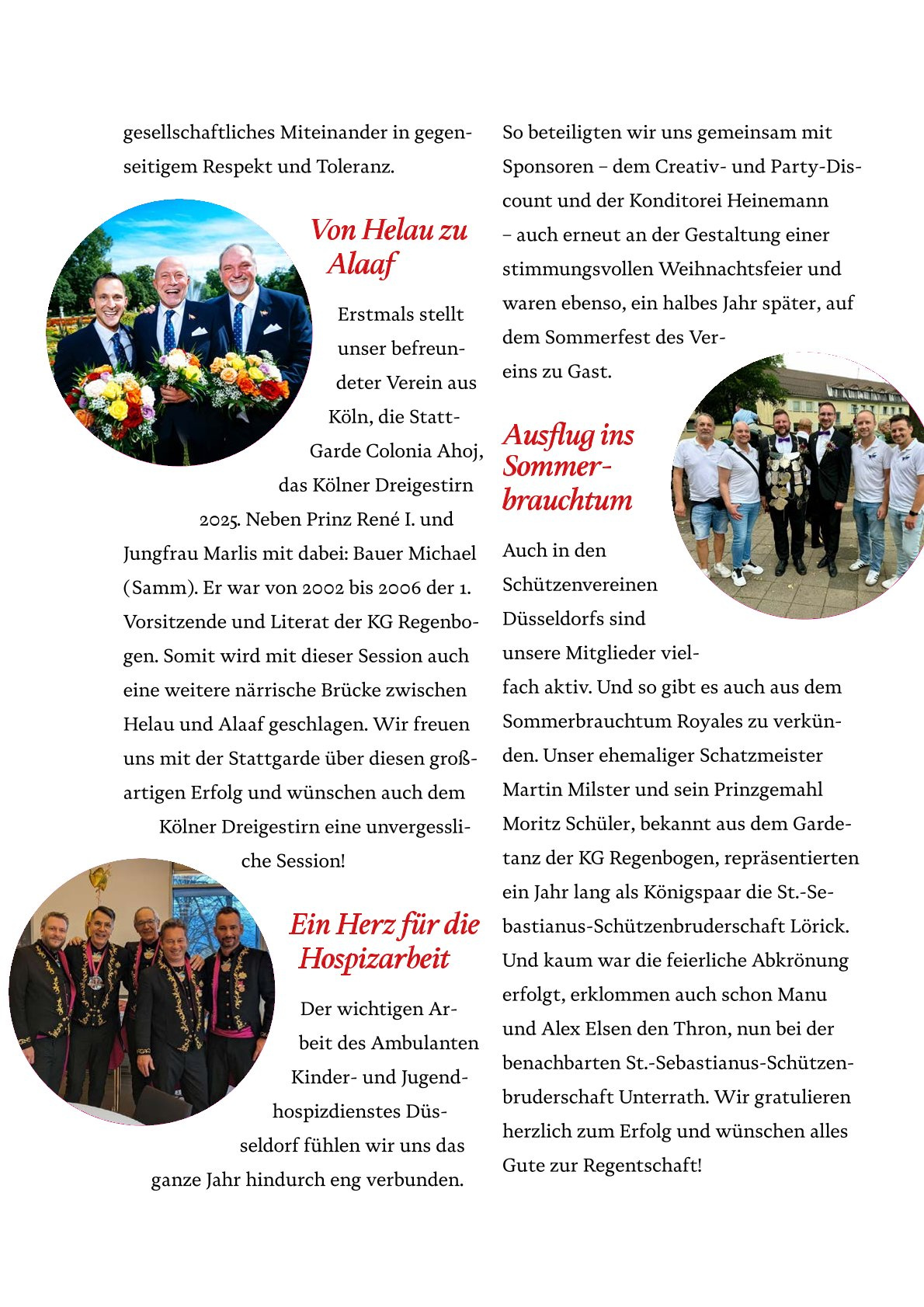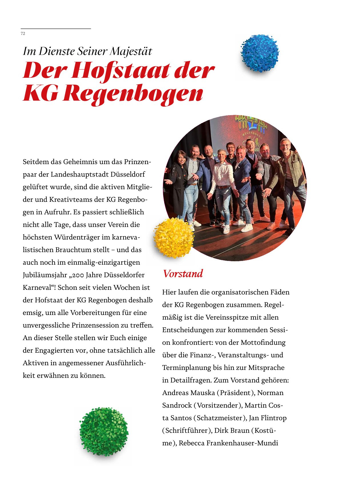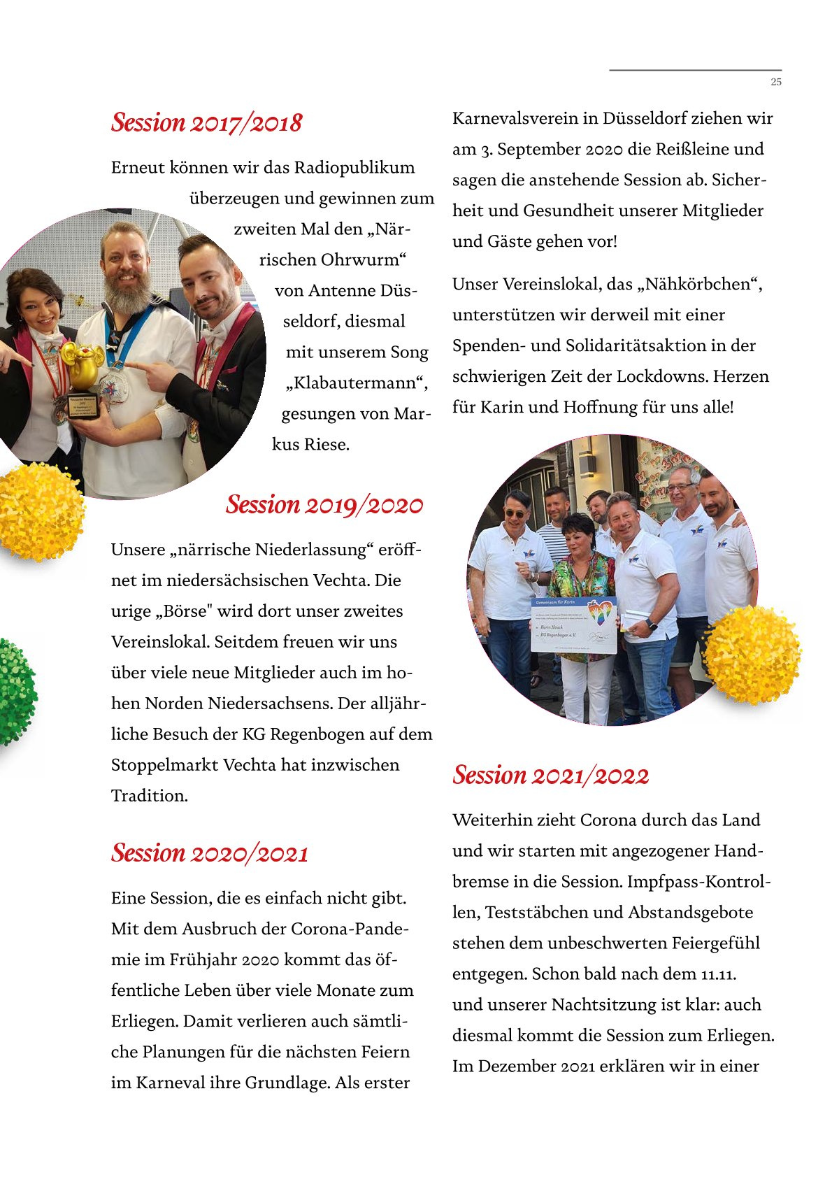 - einen ausführlichen Rückblick auf stolze 25 Jahre KG Regenbogen,