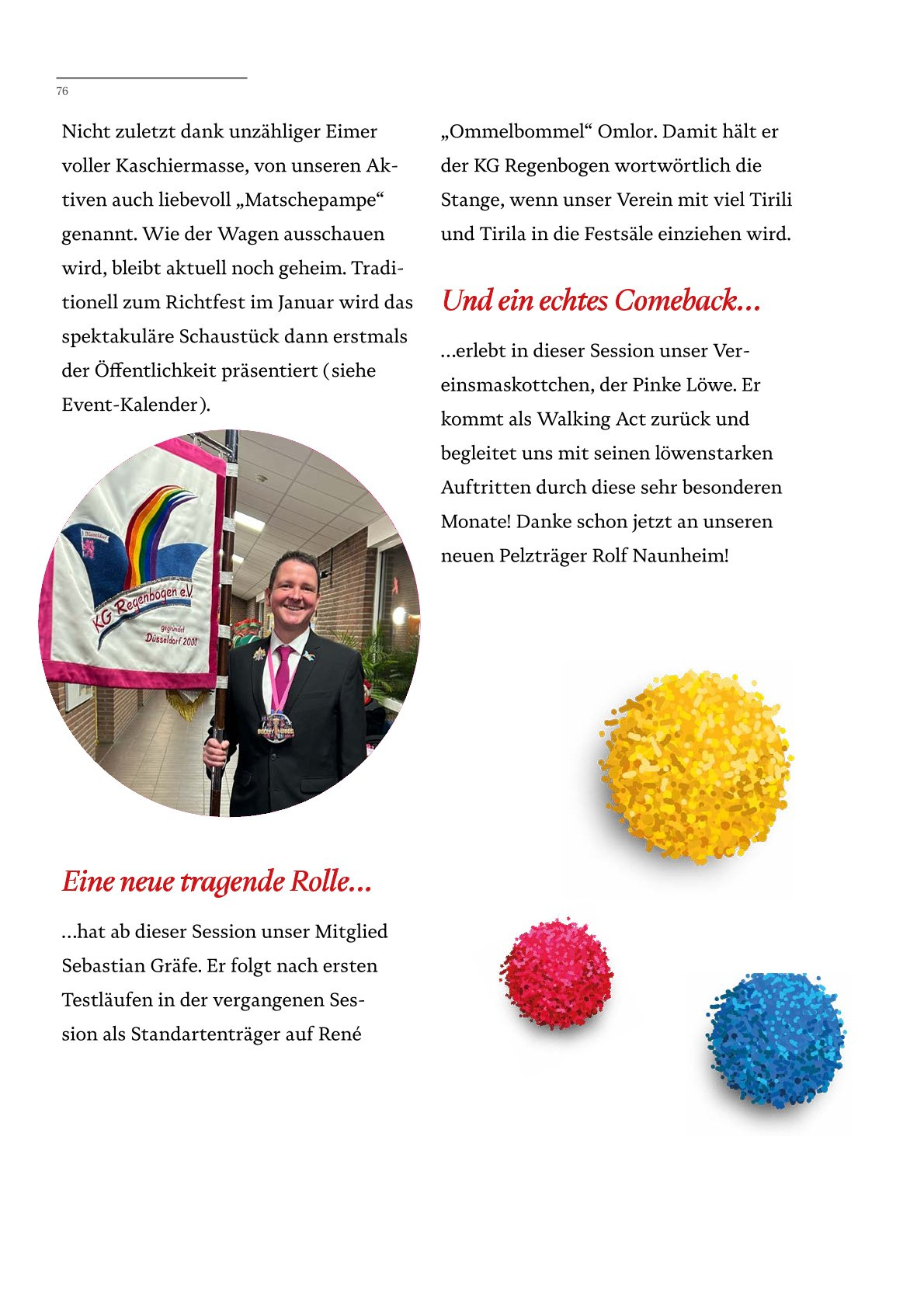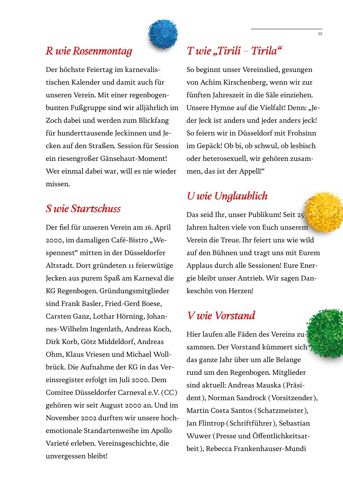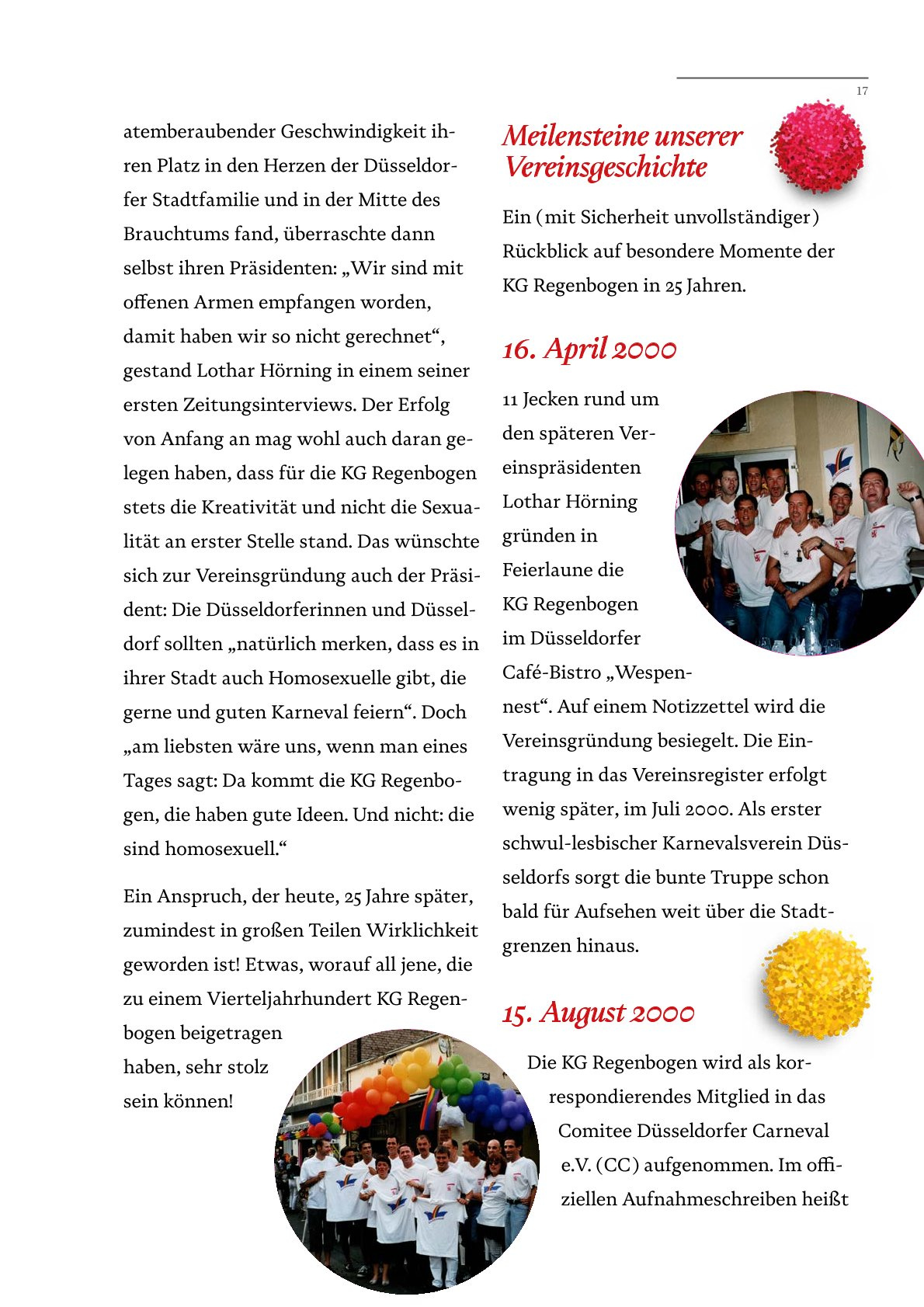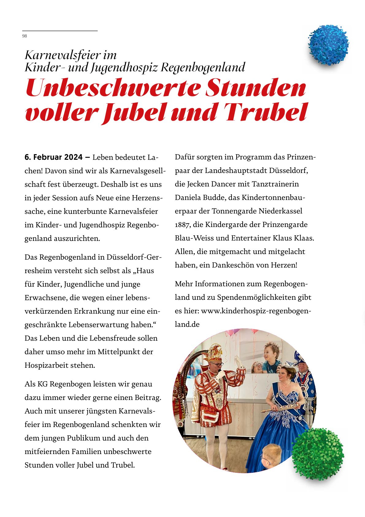 - einen ausführlichen Rückblick auf stolze 25 Jahre KG Regenbogen,