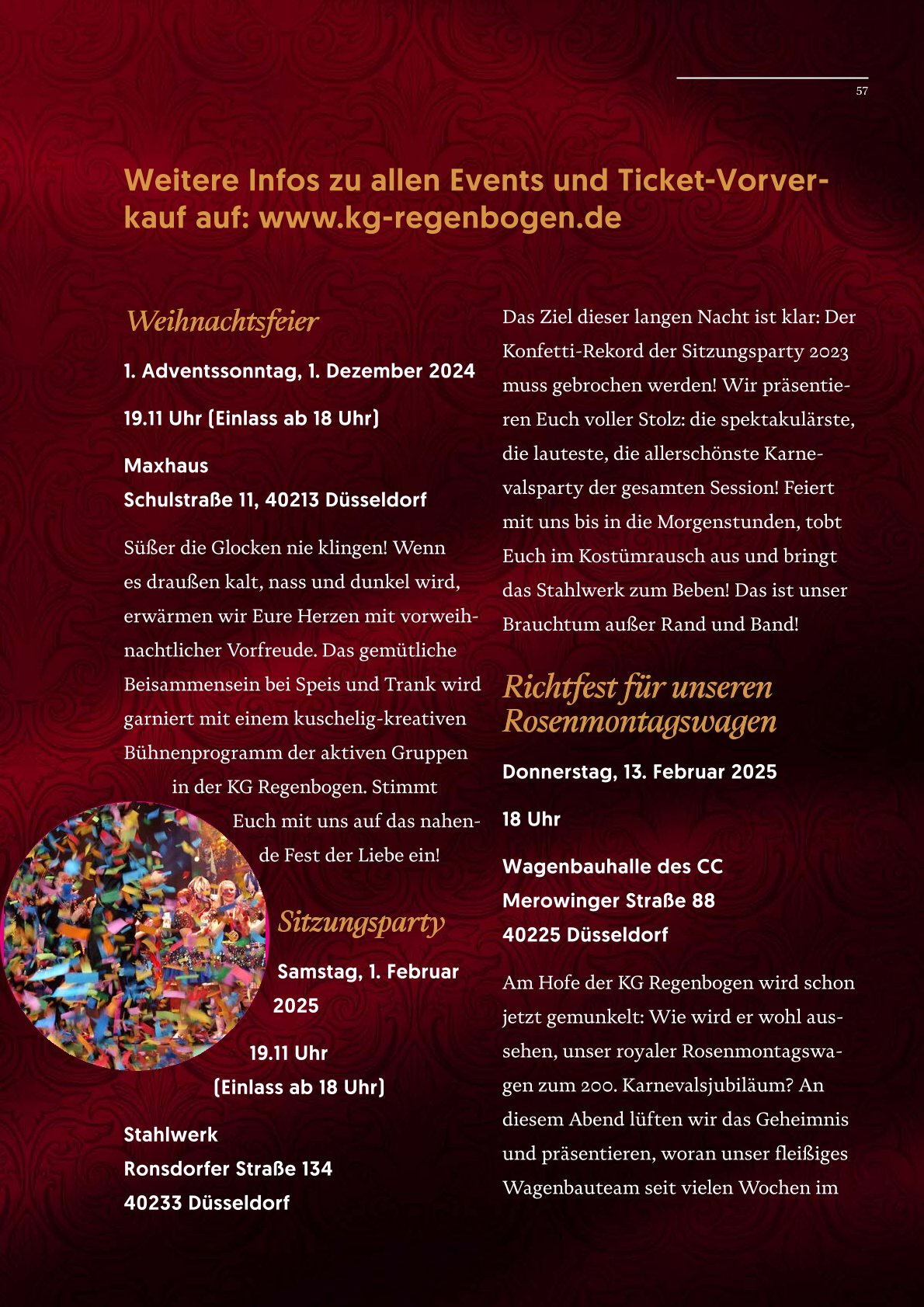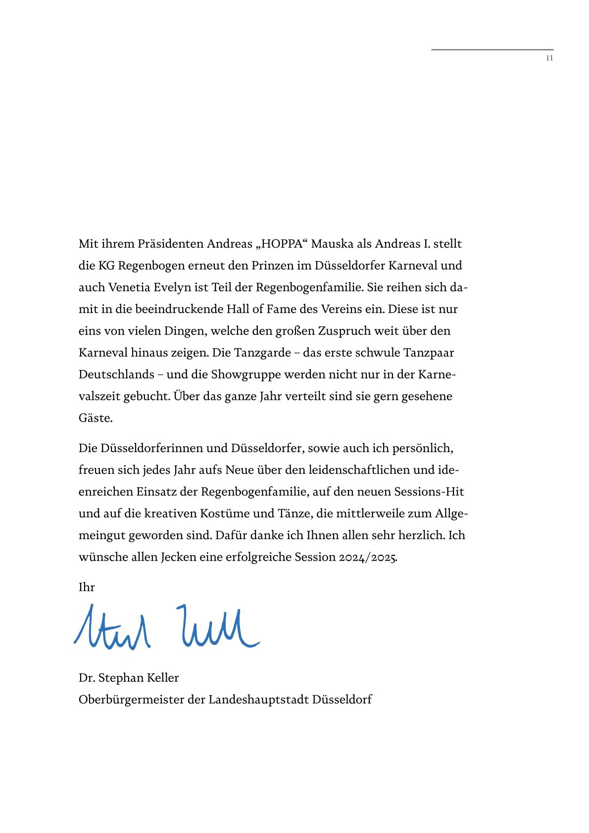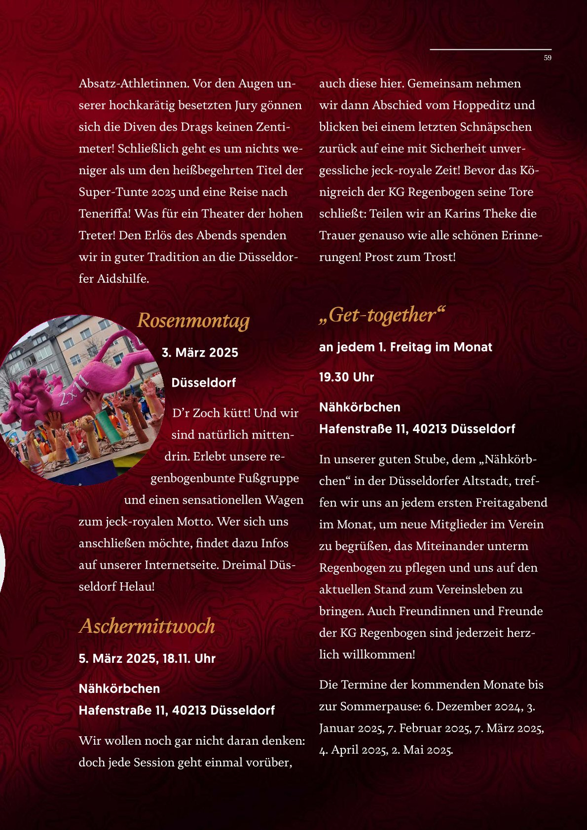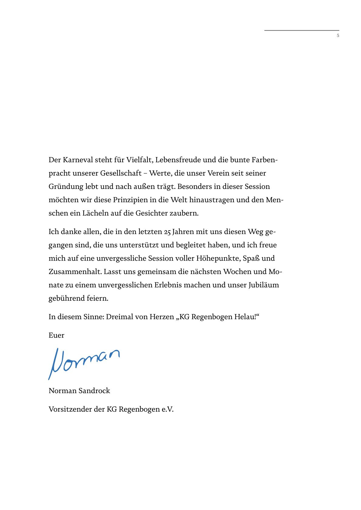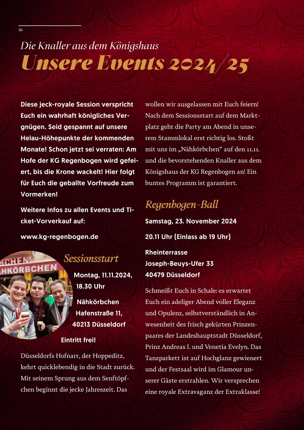 - einen ausführlichen Rückblick auf stolze 25 Jahre KG Regenbogen,