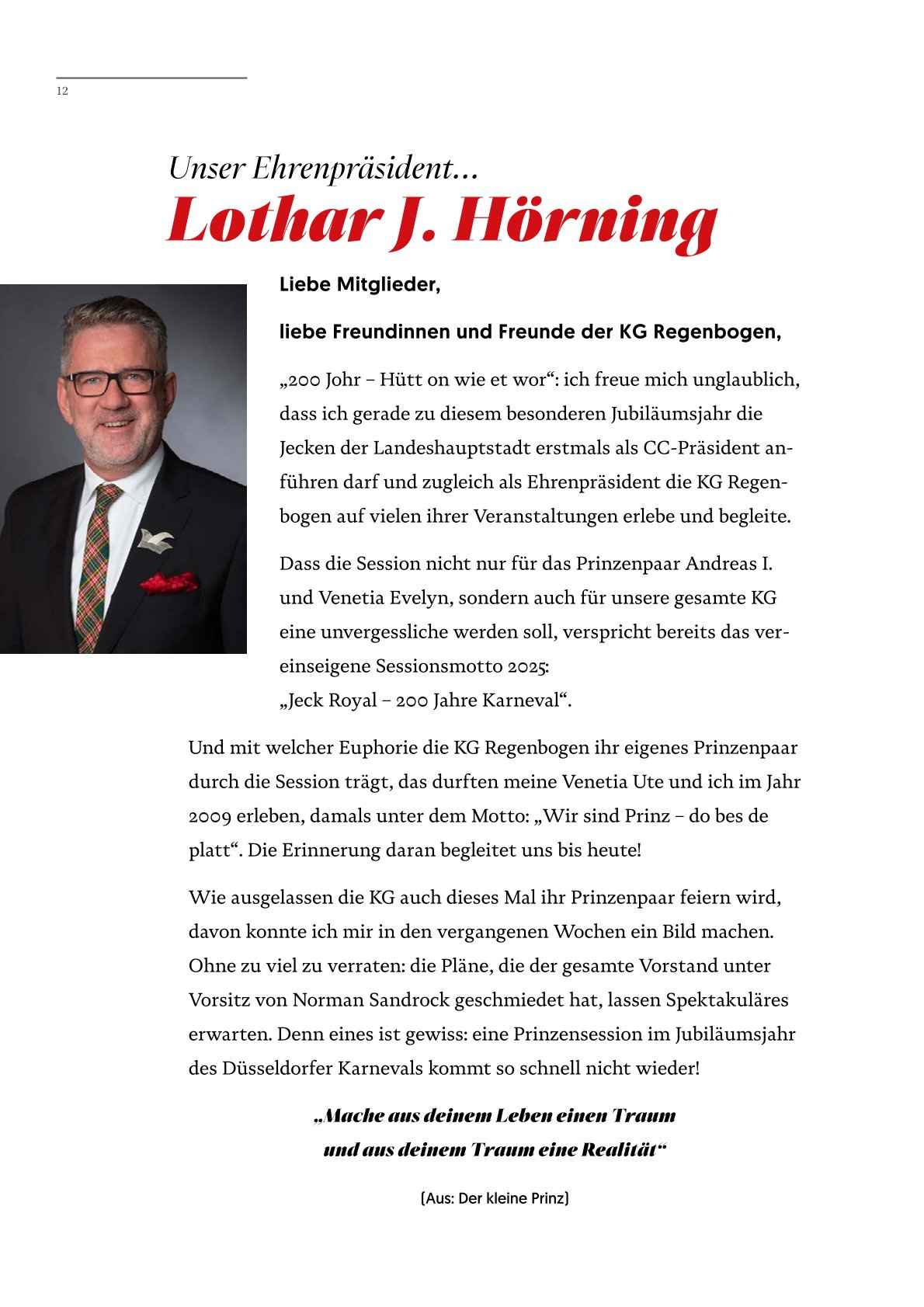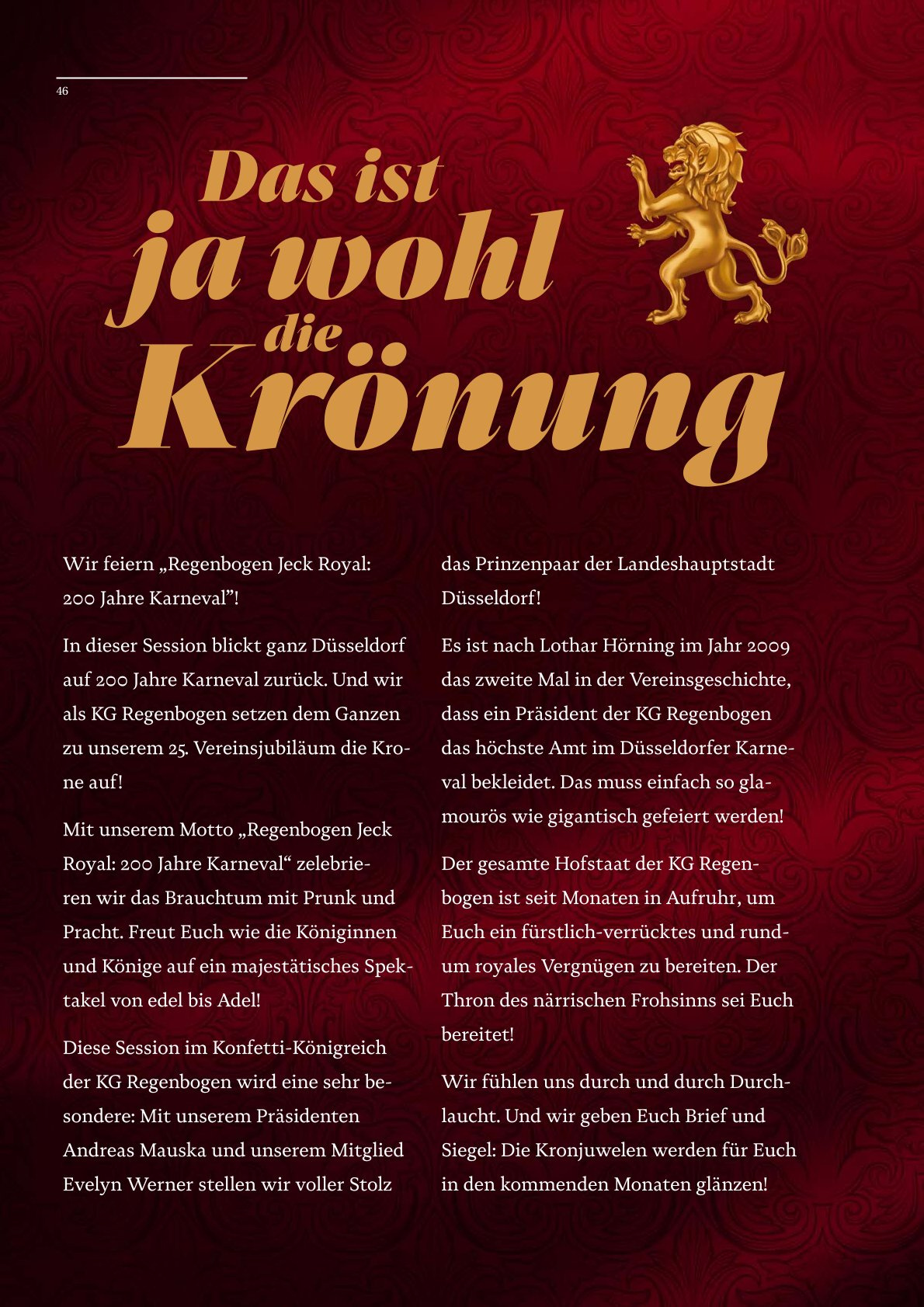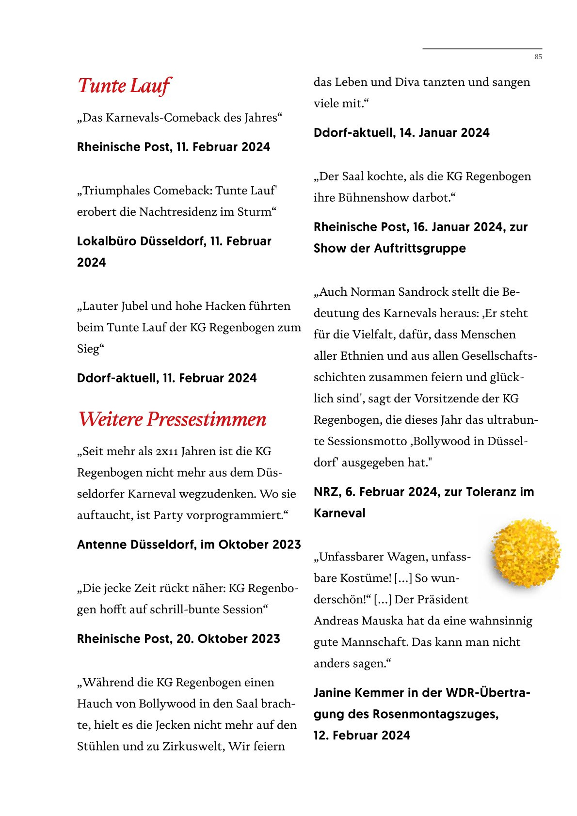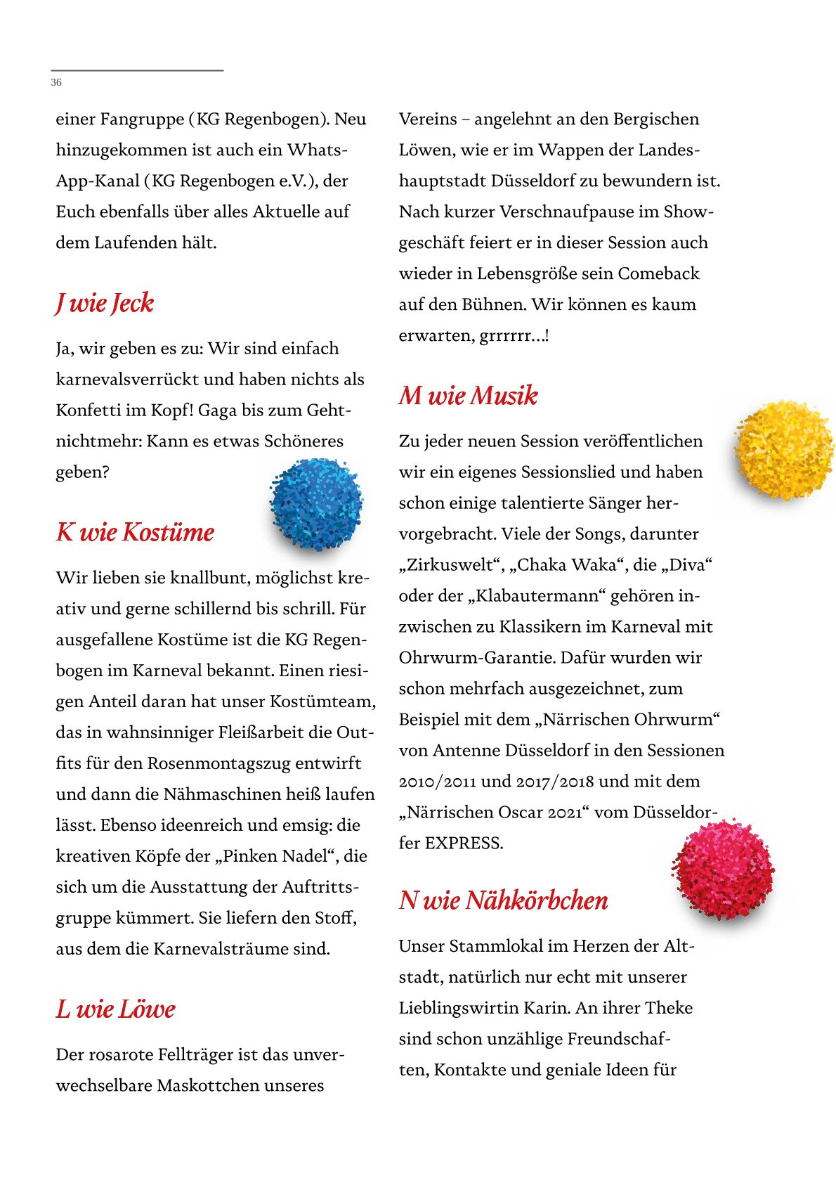 - einen ausführlichen Rückblick auf stolze 25 Jahre KG Regenbogen,