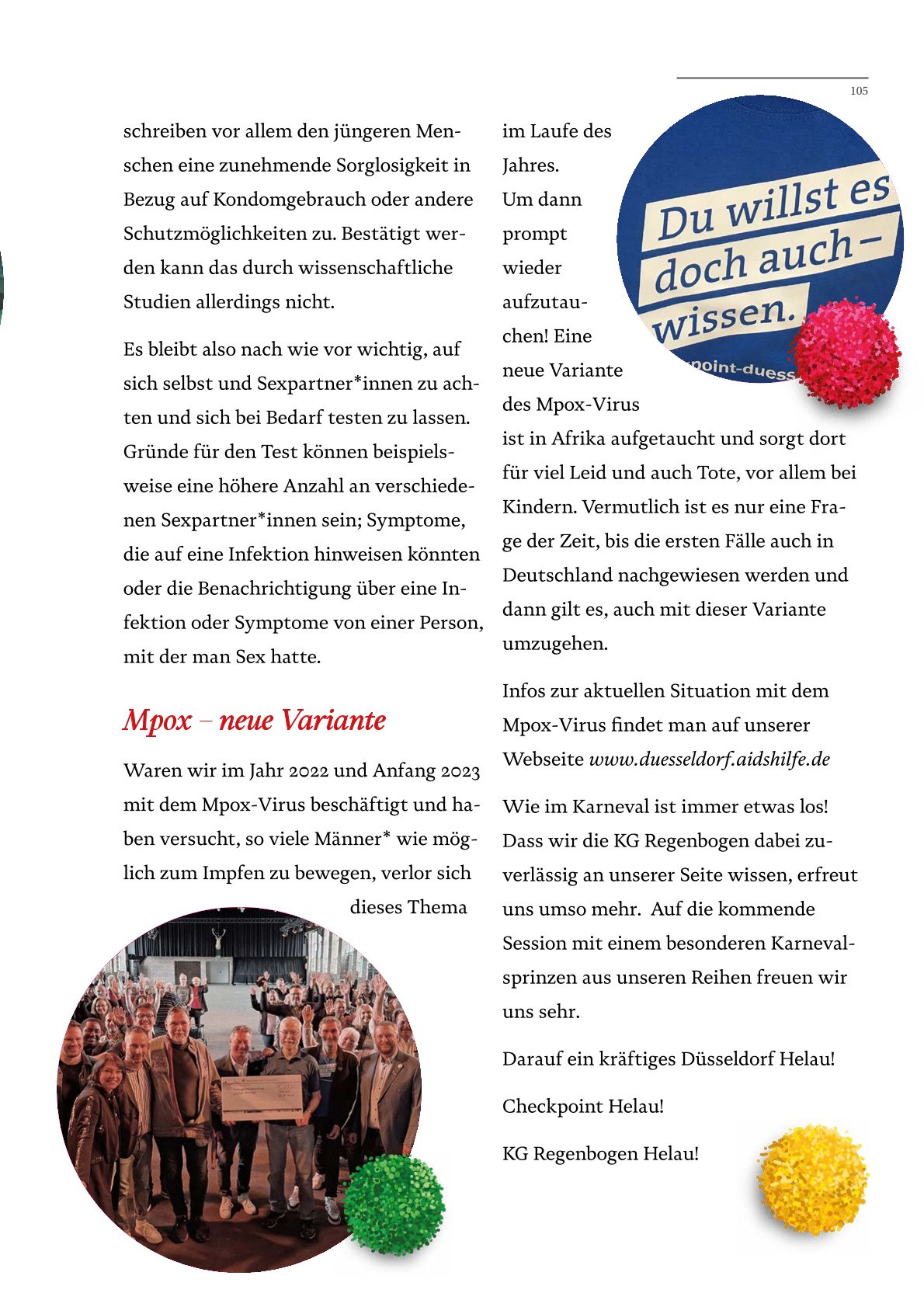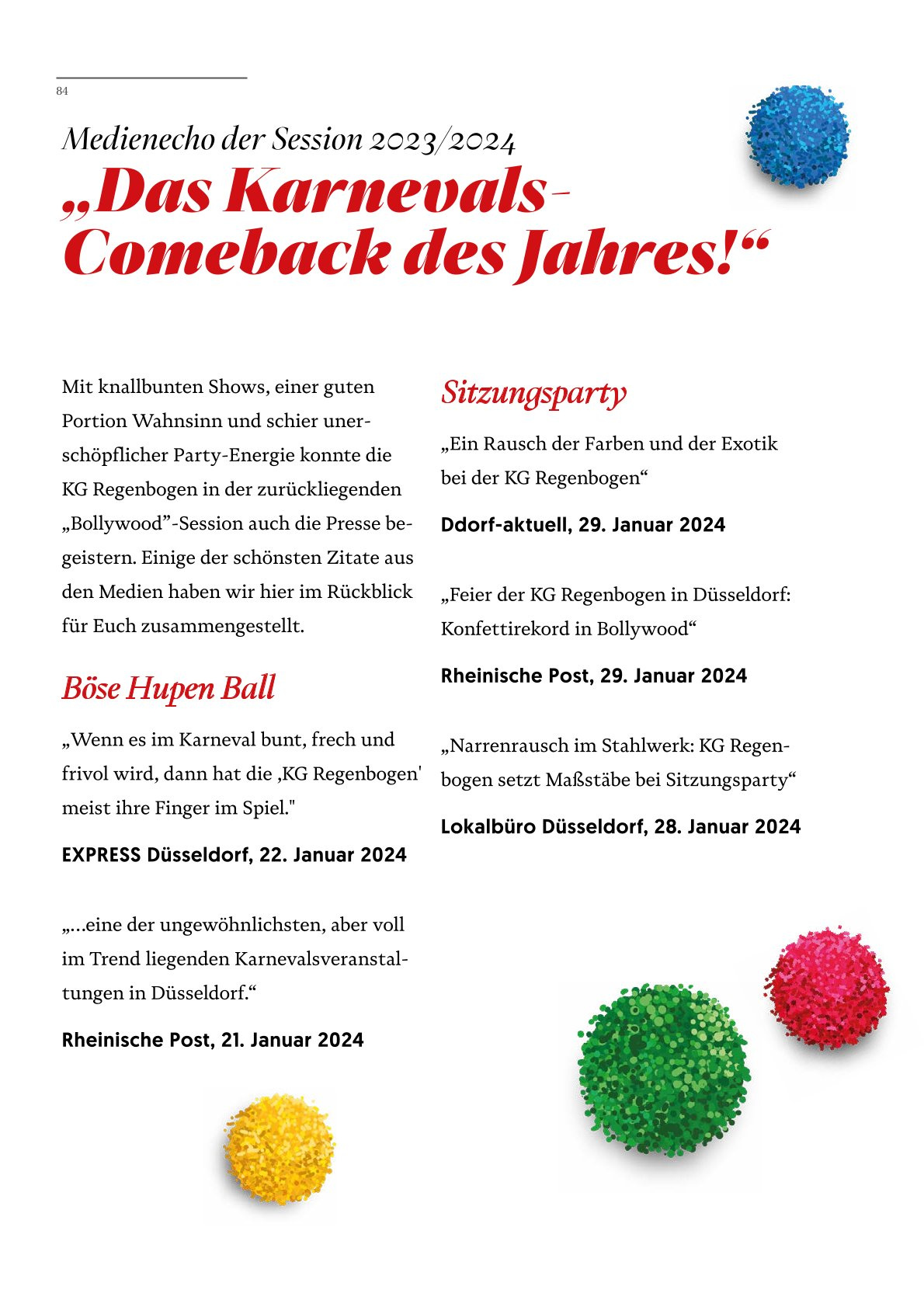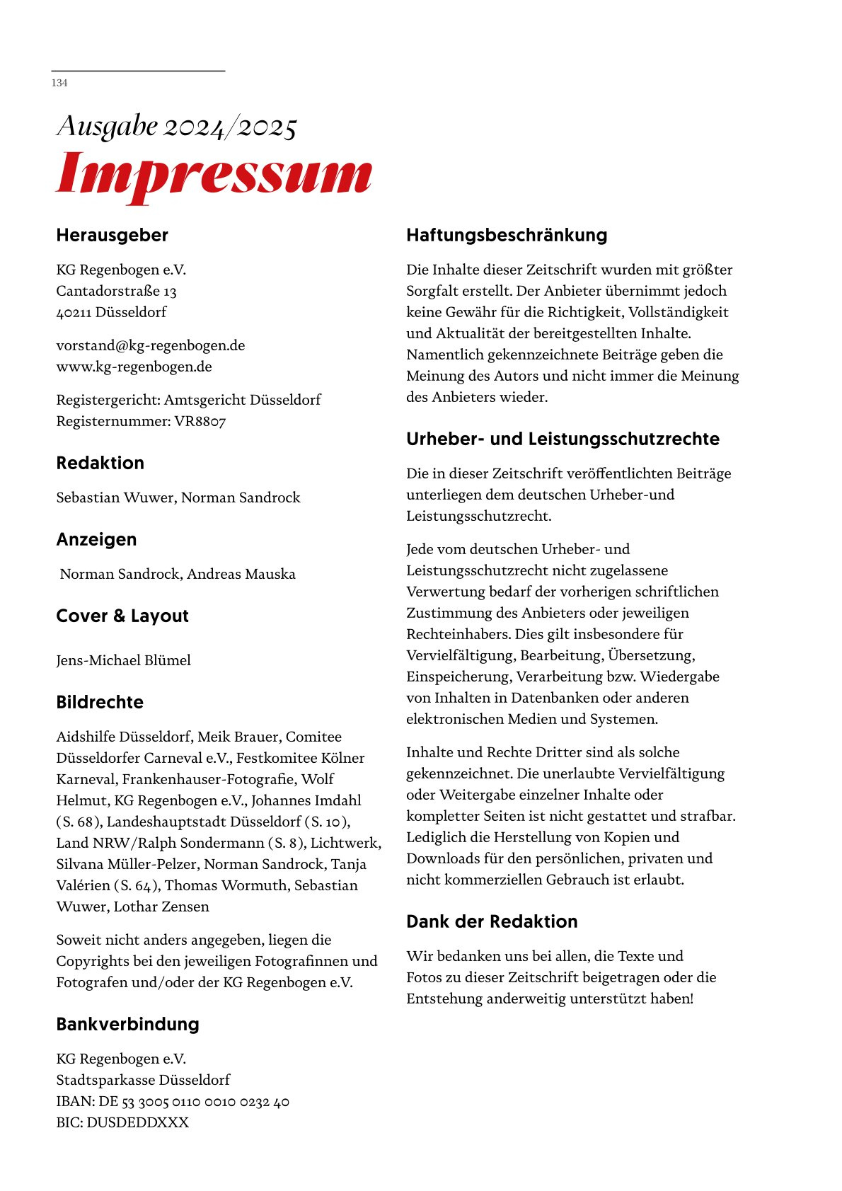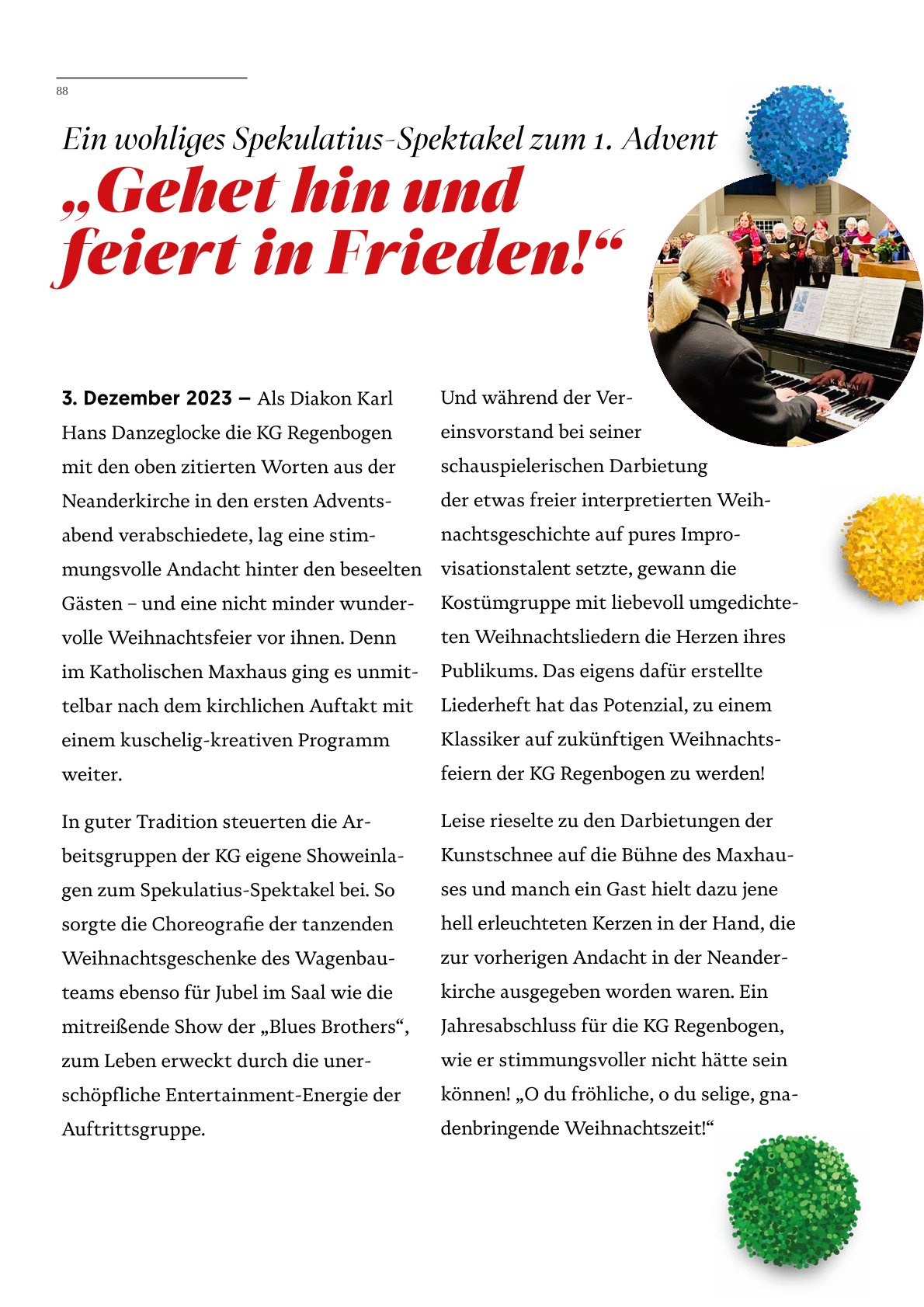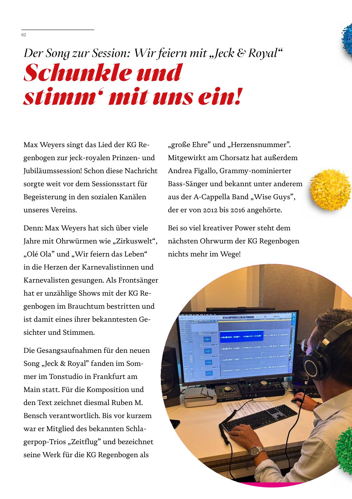 - einen ausführlichen Rückblick auf stolze 25 Jahre KG Regenbogen,