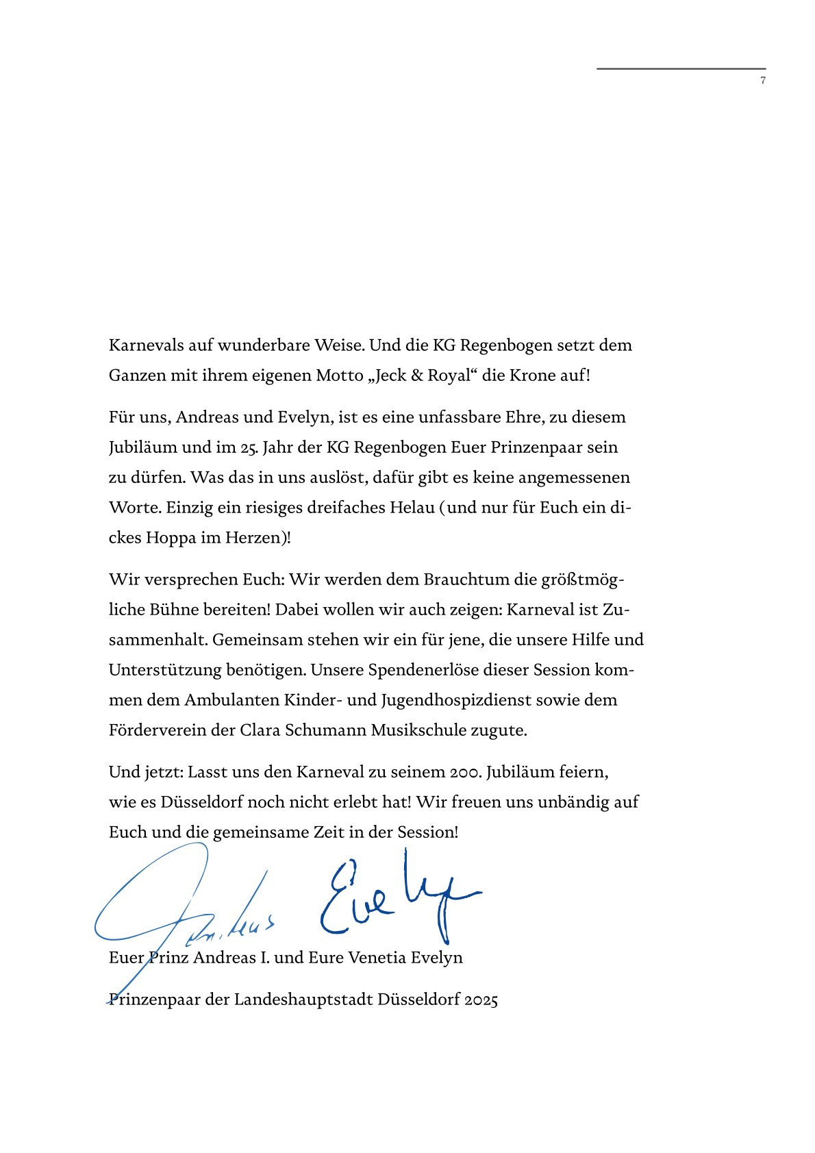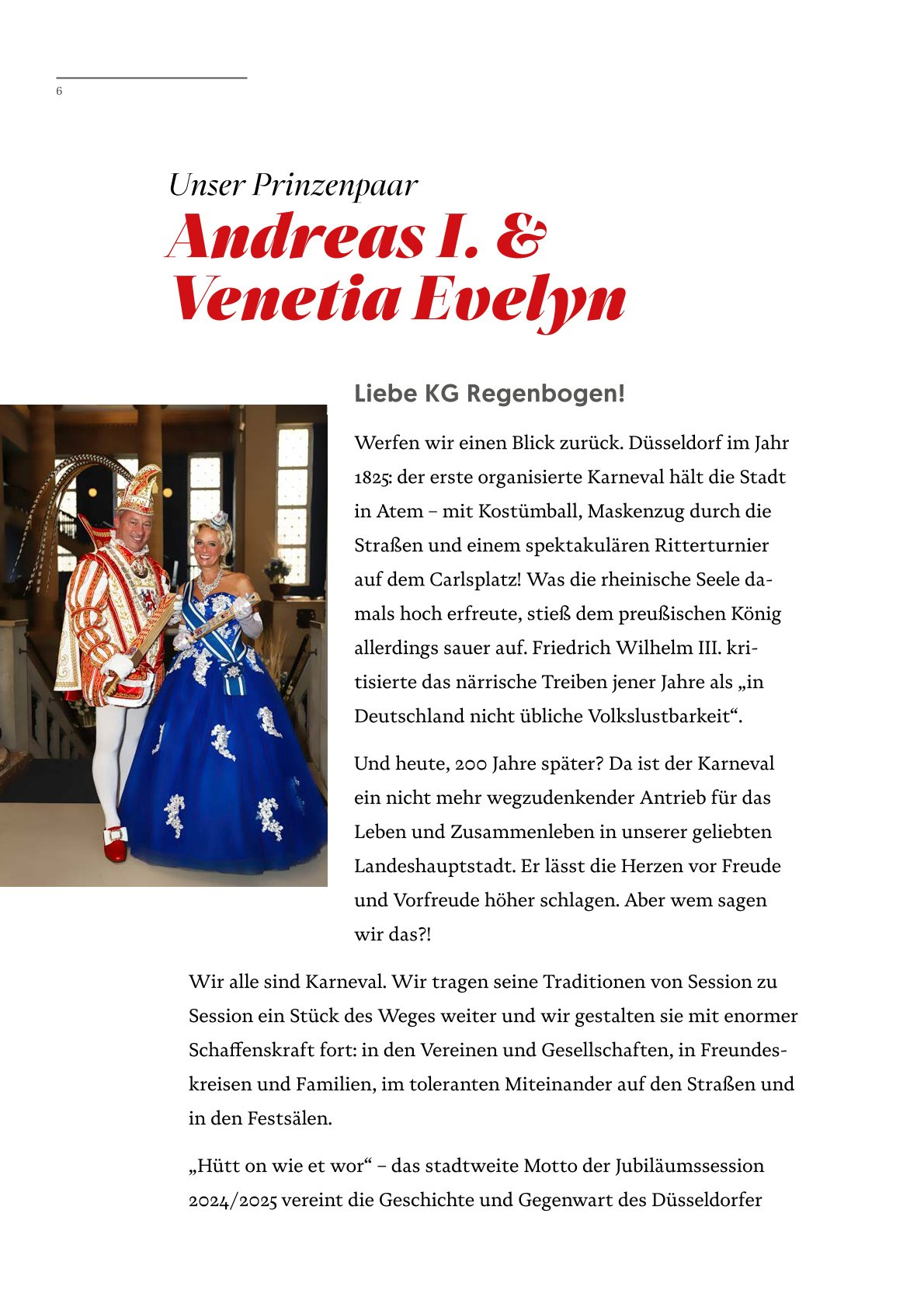 - ein Interview mit dem designierten Prinzenpaar Prinz Andreas I. und Venetia Evelyn,