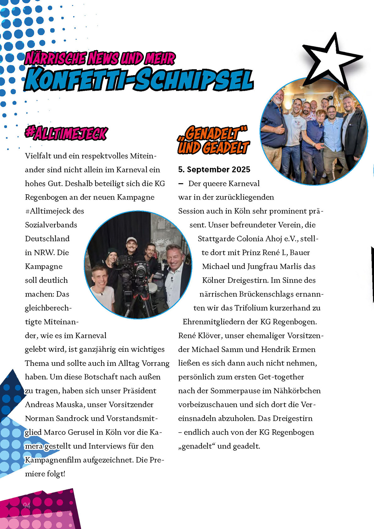 Alle Mitglieder der KG Regenbogen erhalten die Regenbogenpresse in den kommenden Tagen auch automatisch mit der Post.